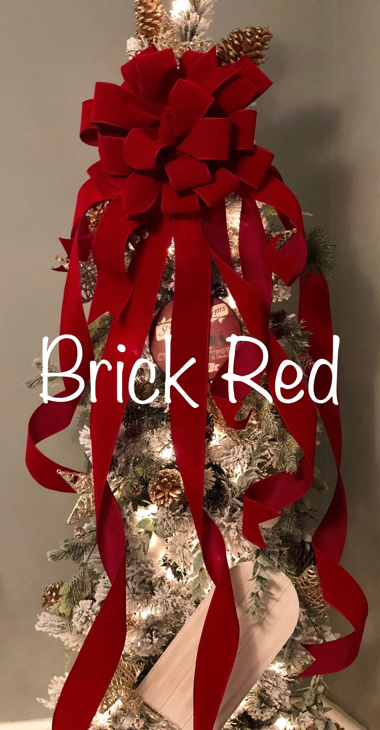 The Carol is a classic traditional red velvet bow that is perfect for large wreaths, Christmas tree toppers, garlands and staircases. This bow is made from high quality wire edge velvet ribbon and is available in two shades of red - a true Holiday Red and a Brick Red. Brick red is somewhere between red and burgundy.