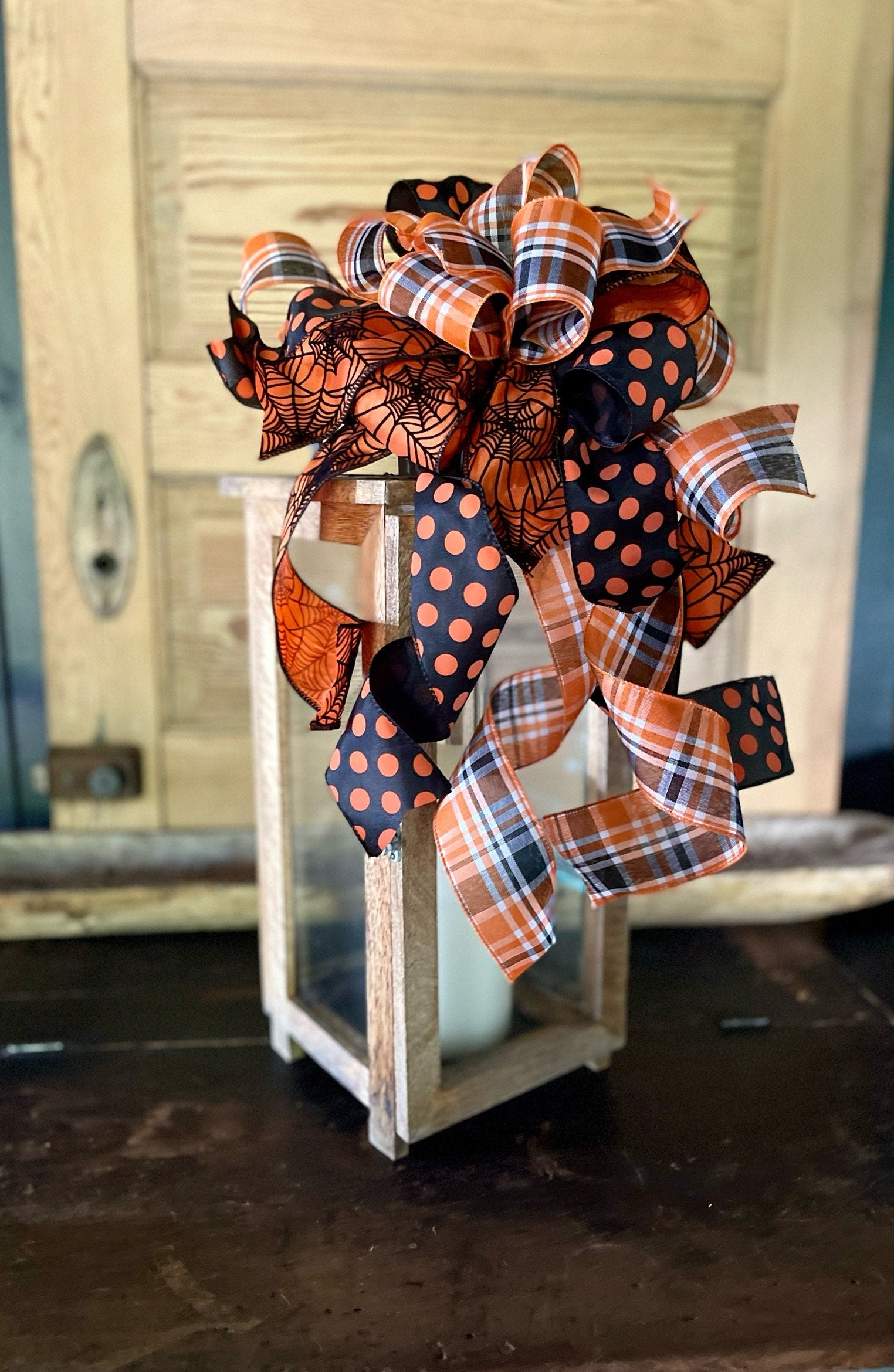 Bow Displayed on a 28” tall lantern, bow may appear differently depending on the size and shape of your lantern.