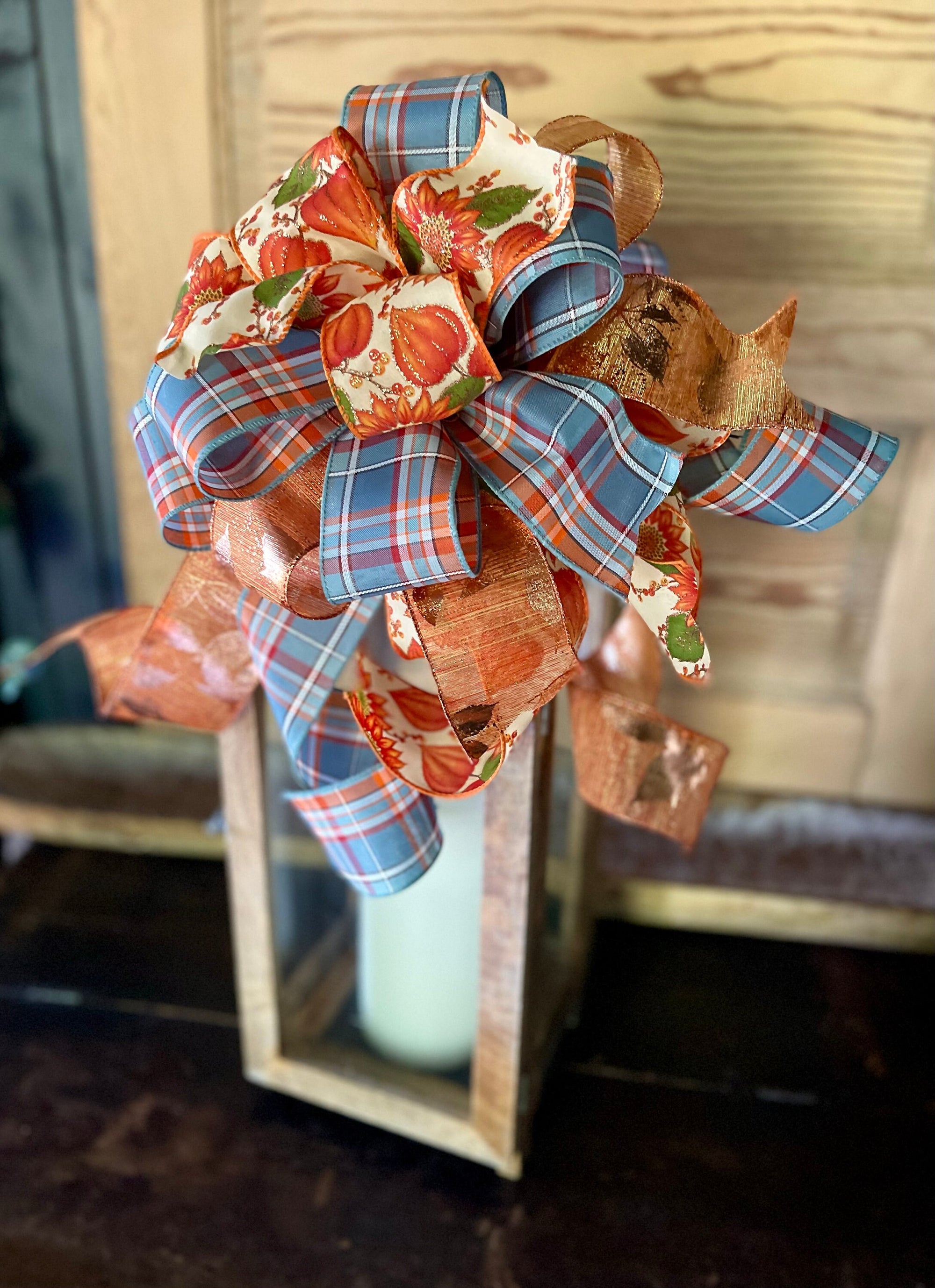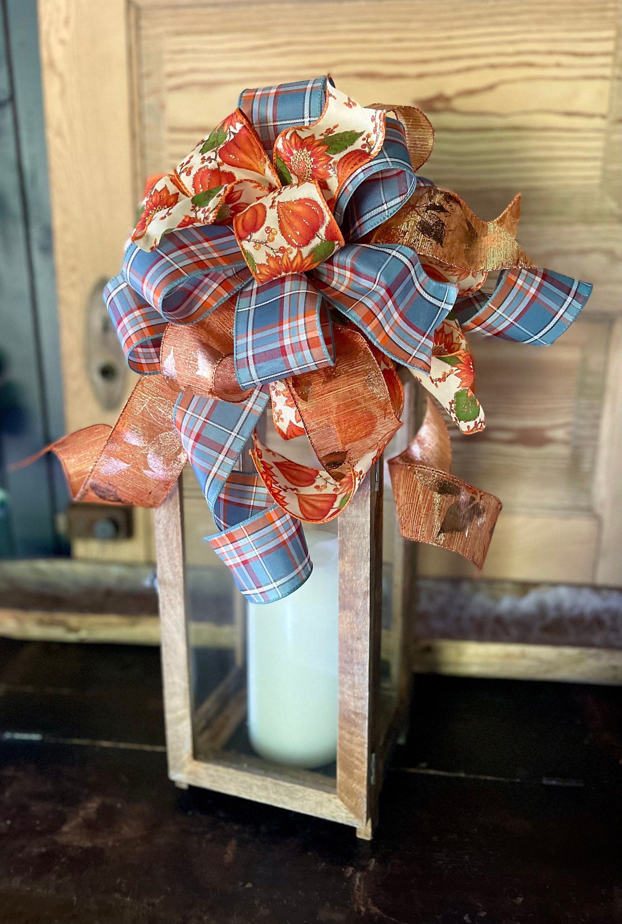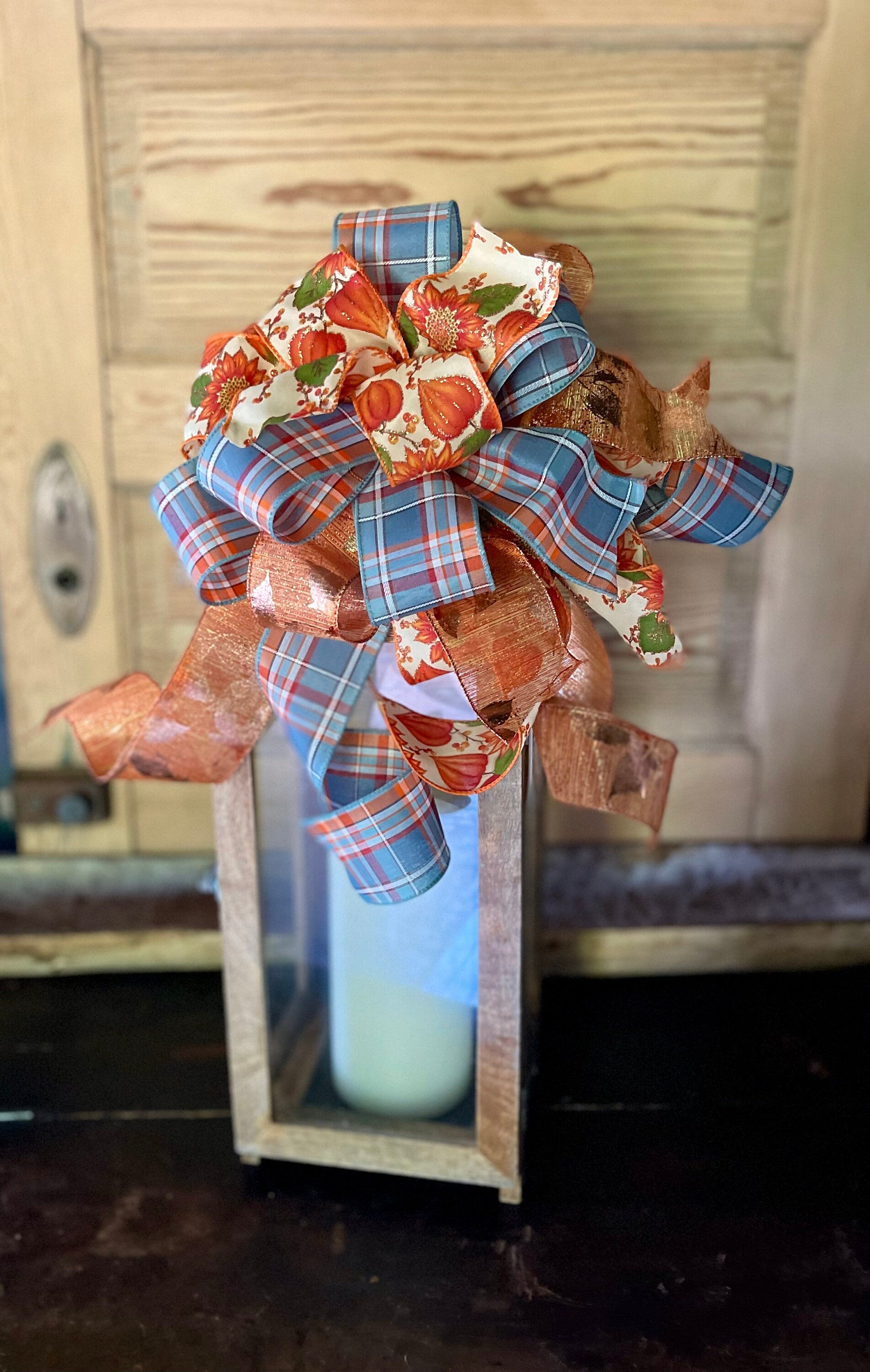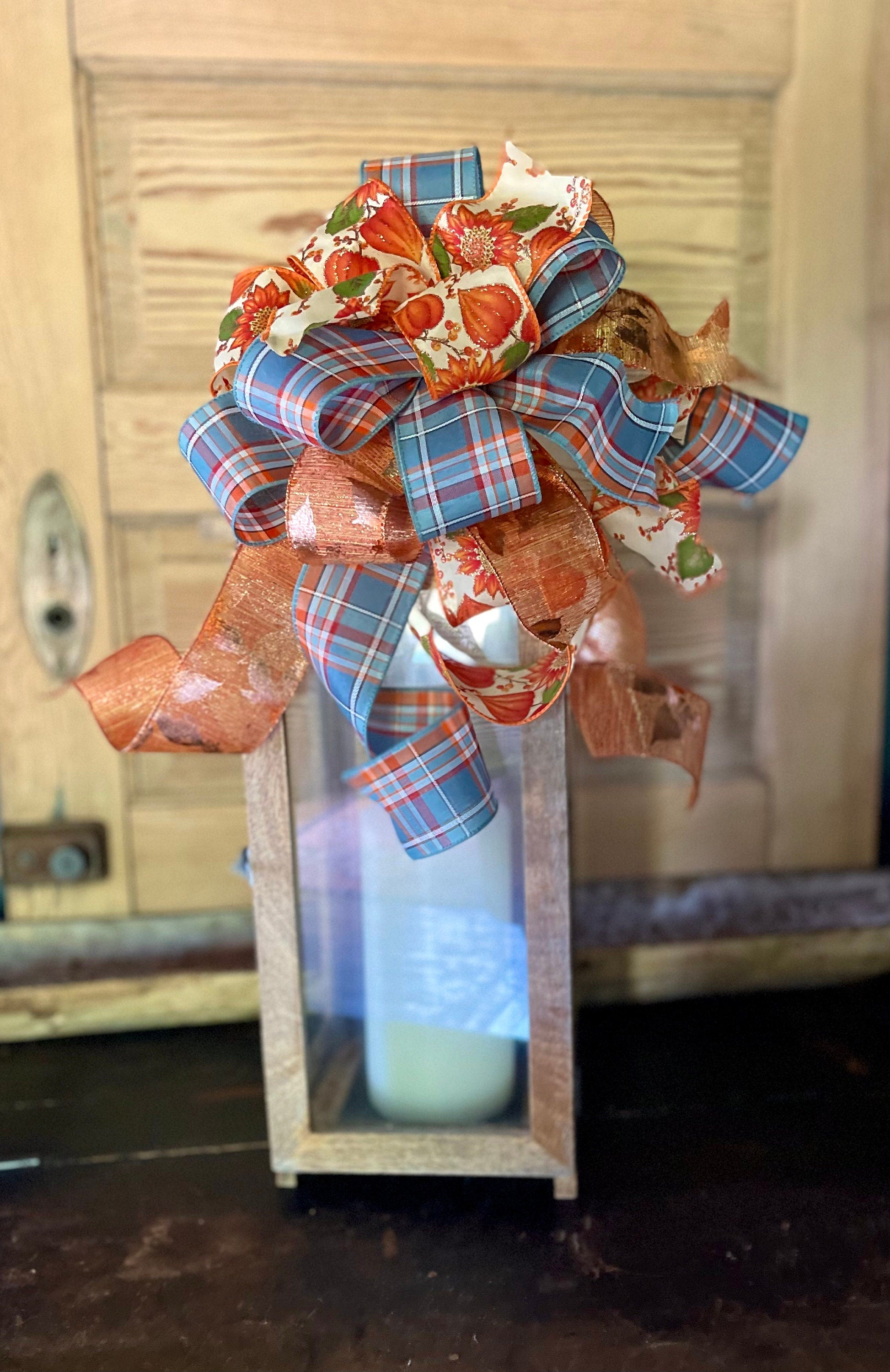 Bow Displayed on a 28” tall lantern, bow may appear differently depending on the size and shape of your lantern.