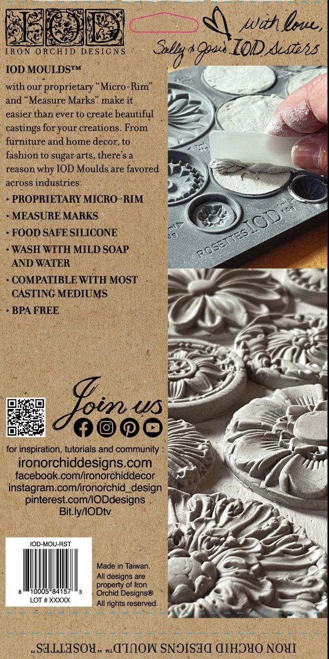 Iron Orchid Design are the industry leaders in Stamps, Moulds & Transfers that are the perfect tools for every project you can imagine! The Rosettes Decor Mould™ is a versatile DIY tool made to help you transform your creations! The moulds are made with food safe material that can be used to create unique shapes for baking, sugar arts, decor, furniture, and just about whatever else you can put your mind to.