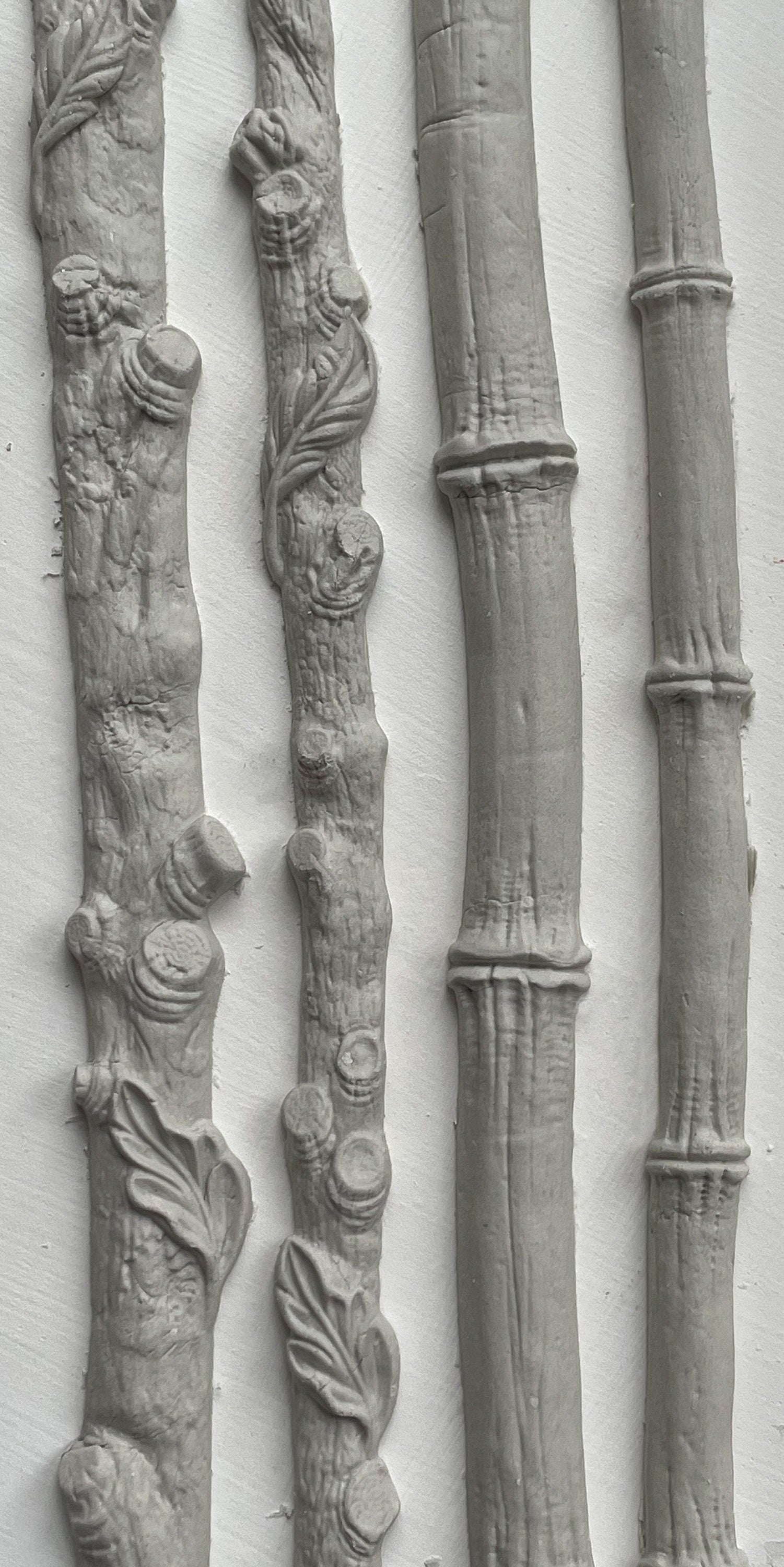 This 6x10 mould has 10 architectural designs depicting branches and bamboo trim pieces. The overall moulds are thoughtfully designed for ease of use and maximizing your decor applications. Casting moulds can bring a new dimension to your craft projects, use your choice of medium such as air dry clay, paper clay, hot glue, soap or use resin pours to make beautiful casts. Perfect for adding embellishments on furniture, signs, tiles, pots and so many other creative ways to use them! These moulds are also food safe and can be used for creating chocolate molds, pie embellishments & cake elements! If using for food, you must not use for clay or other medium - buy 1 for food use and 1 for crafting!