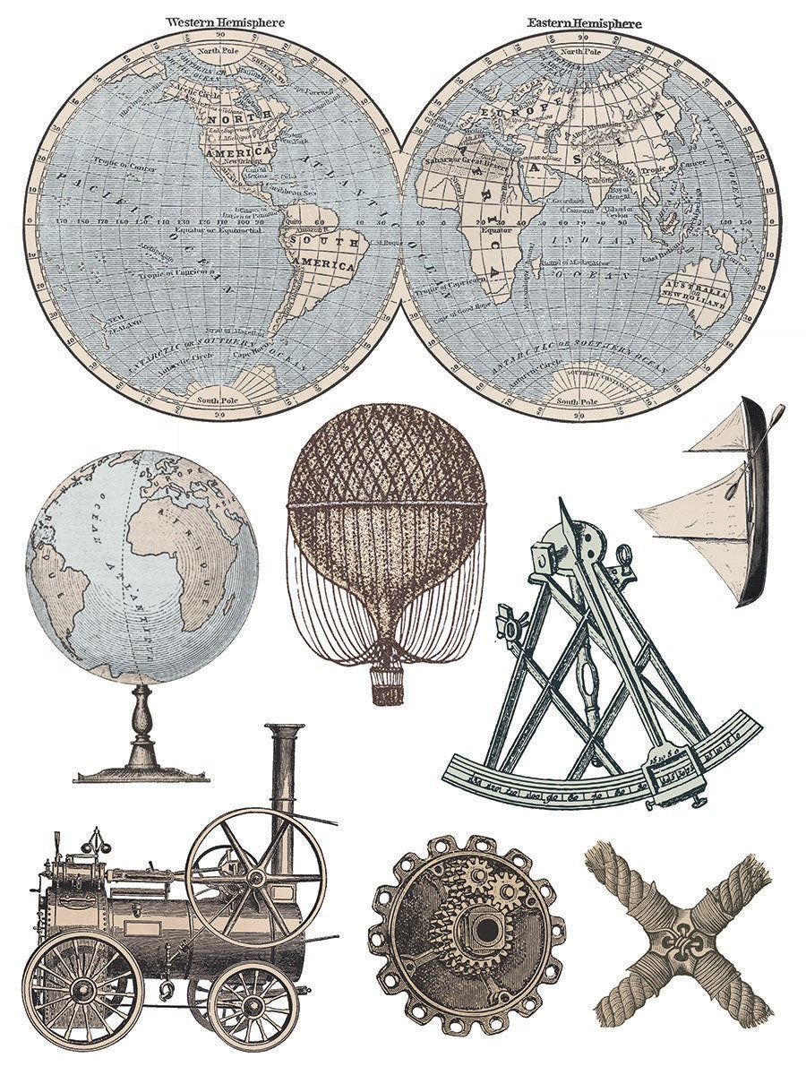 This 12x16 pad has EIGHT sheets of old world designs - featuring hot air balloons, ships, gears, pocket watches and a full sheet of letters! Perfect for steampunk decor - use the entire sheets as is or cut out the sections you want to use for smaller projects! The collection of transfers are thoughtfully designed for ease of use and maximizing your decor uses to build your own scenes with individual transfers by grouping them together. Transfers aren’t just for wood projects! Use transfers to enhance windows, mirrors, & more! Perfect for adding little embellishments on pots, plates, cups, cards or full scenes to furniture projects.