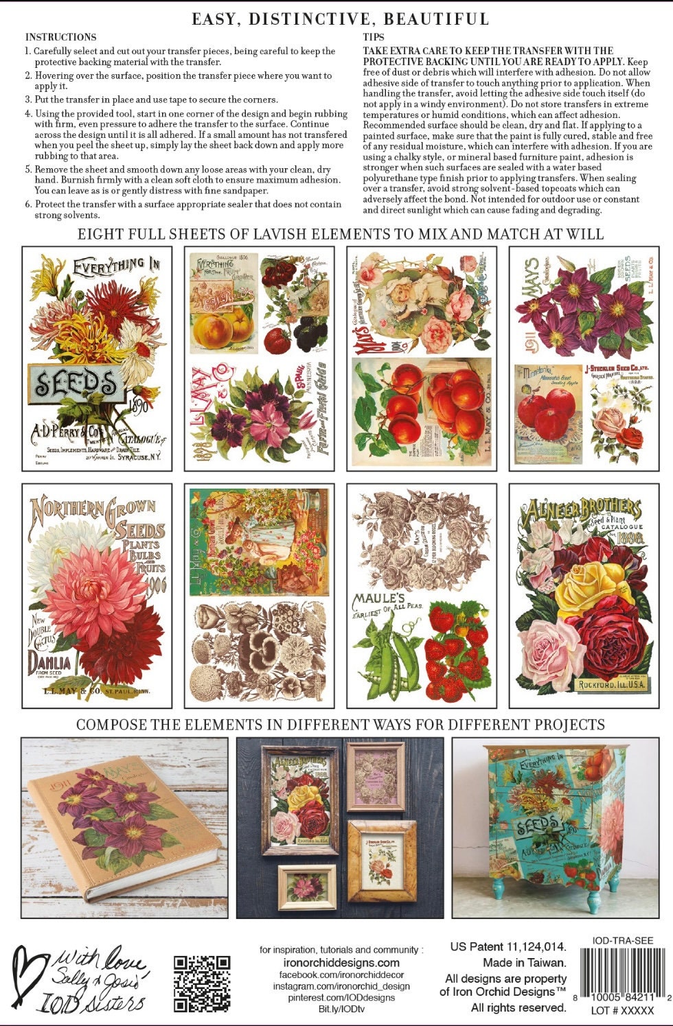 This 8x12 pad has 8 sheets of old world vintage Victorian seed label transfer designs that are perfect for a la carte projects, small pieces & signs or mix for a large scene design! Lots of Victorian inspired designs that are perfect for up cycling found objects into unique decor! The collection of transfers are thoughtfully designed for ease of use and maximizing your decor uses to build your own scenes with individual transfers by grouping them together. Transfers aren’t just for wood projects! Use transfers to enhance windows, mirrors, & more! Perfect for adding little embellishments on pots, plates, cups, cards or full scenes to furniture projects.