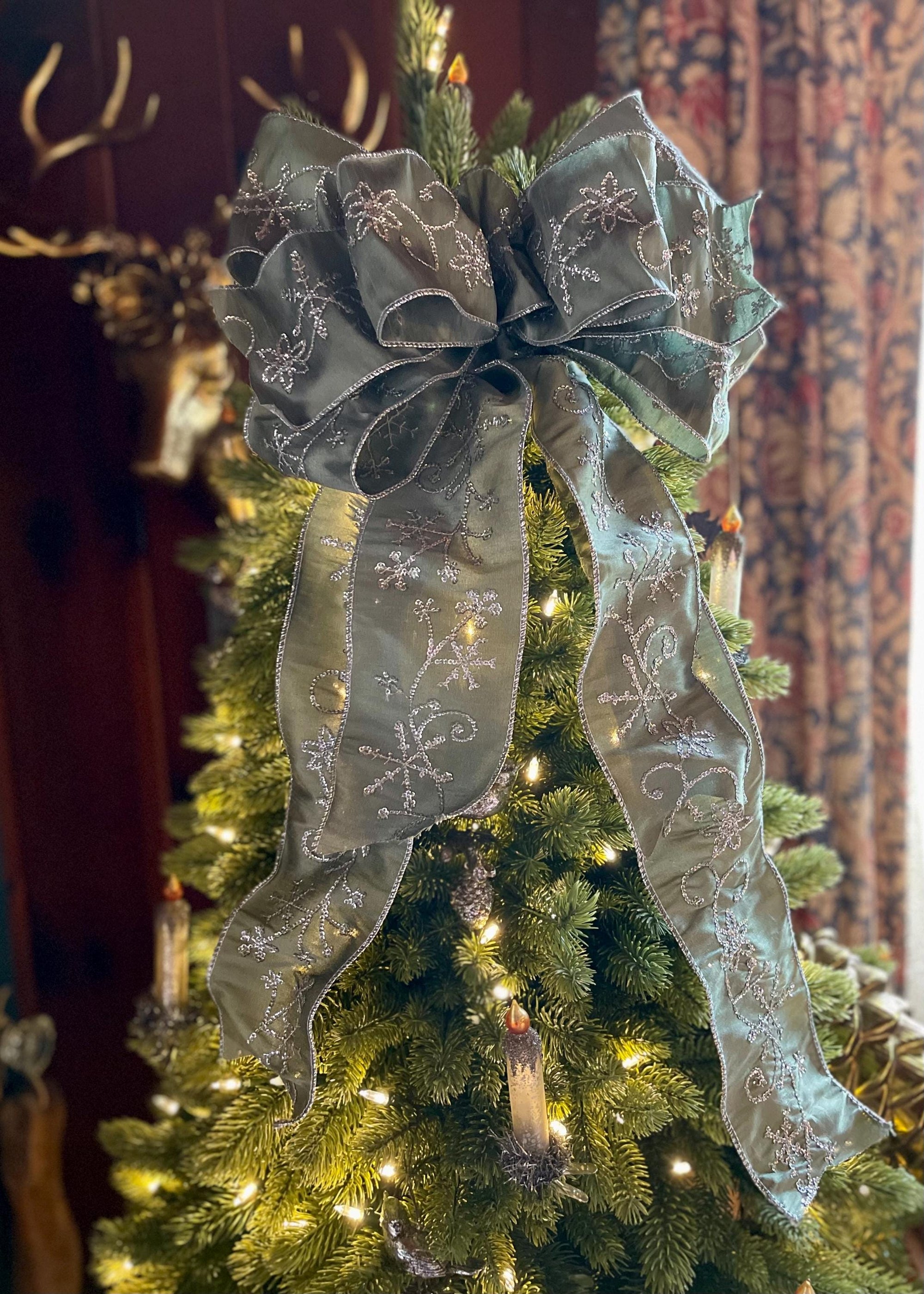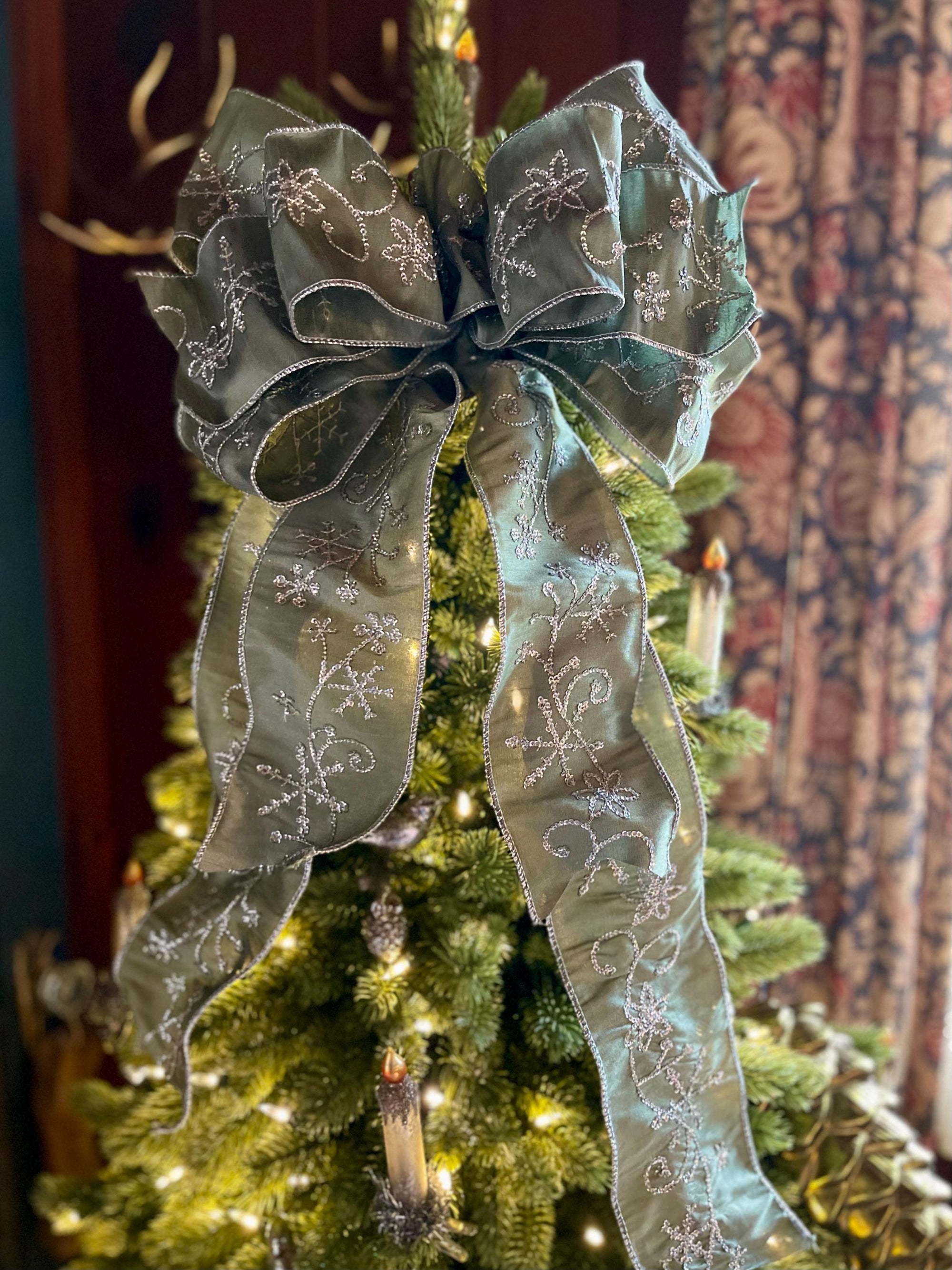 Midori is the soft brilliance your tree needs this year! Smoky, soothing sage winter tones featuring a gorgeous embroidered fabric in sage with silver appliqué. Midori will add a soft shimmer & serene feel to your decor.