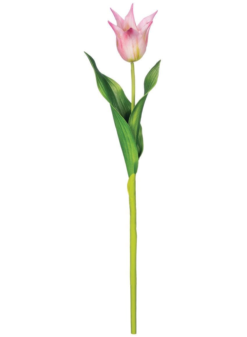 Beautiful detail on this tulip, right down to the color of each petal. A lovely soft pink color that will bring your designs to life. Petal made of soft plastic with sculptured foam leaves.