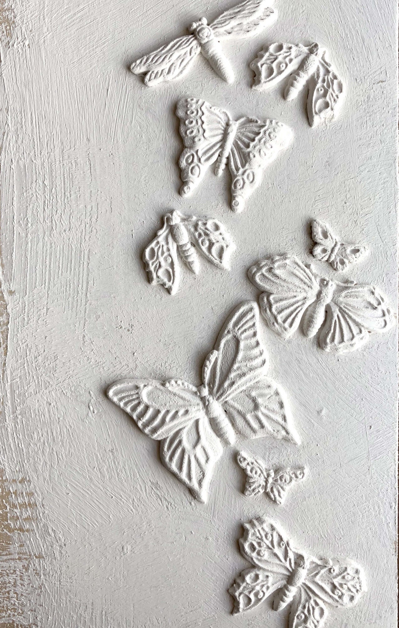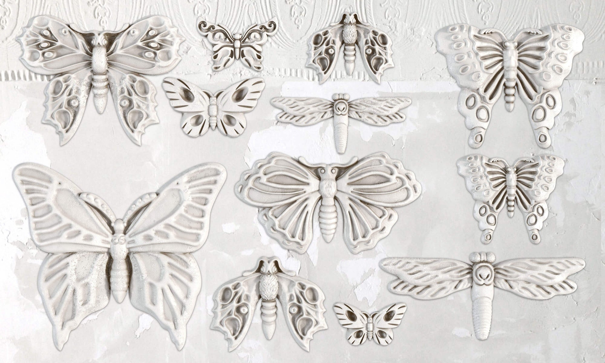 This 6x10 mould has 12 butterfly, moth & dragonfly designs depicting spread wings & in flight. The overall moulds are thoughtfully designed for ease of use and maximizing your decor applications. Casting moulds can bring a new dimension to your craft projects, use your choice of medium such as air dry clay, paper clay, hot glue, soap or use resin pours to make beautiful casts. Perfect for adding embellishments on furniture, signs, tiles, pots and so many other creative ways to use them! These moulds are also food safe and can be used for creating chocolate molds, pie embellishments & cake elements! If using for food, you must not use for clay or other medium - buy 1 for food use and 1 for crafting!