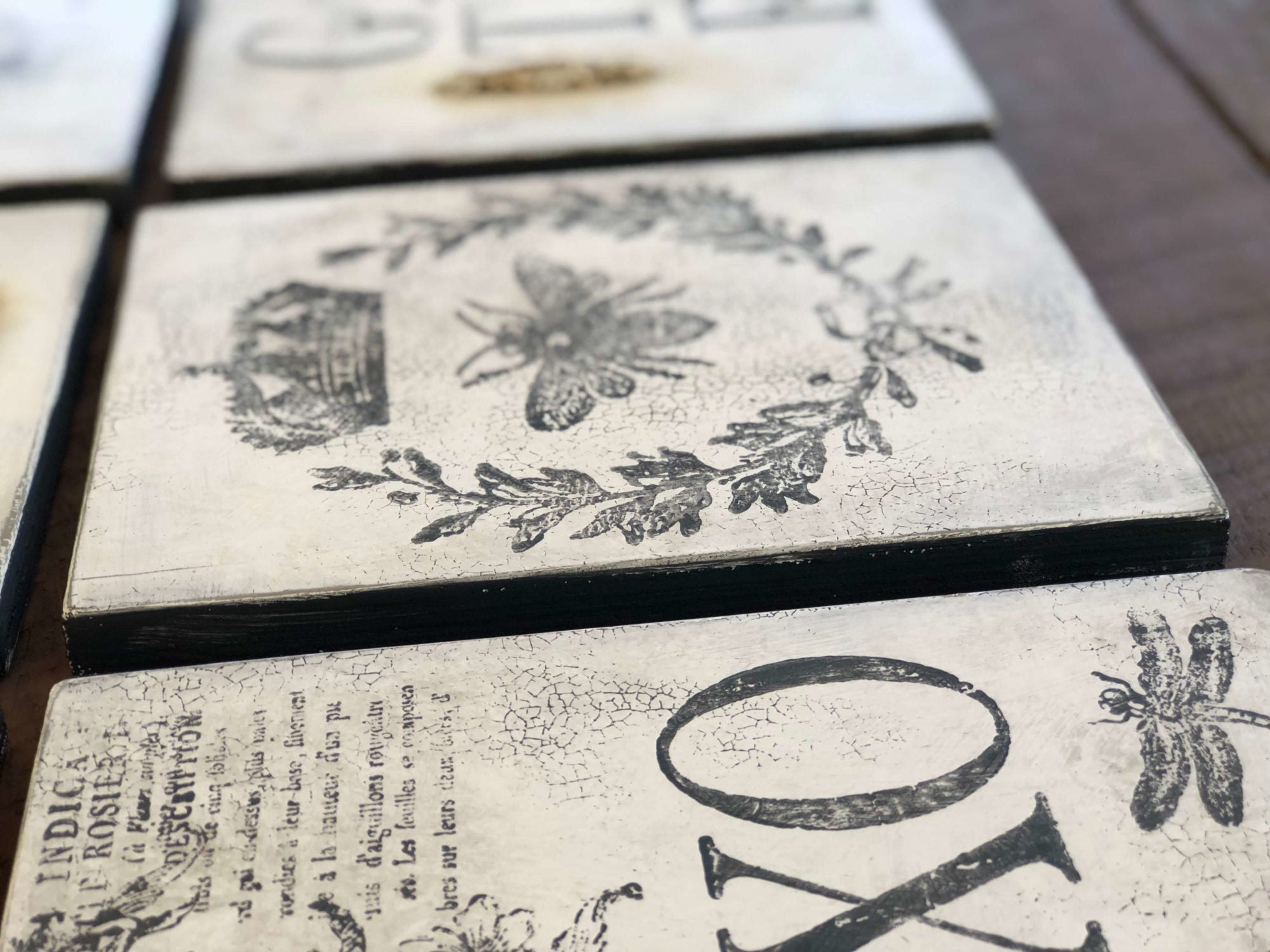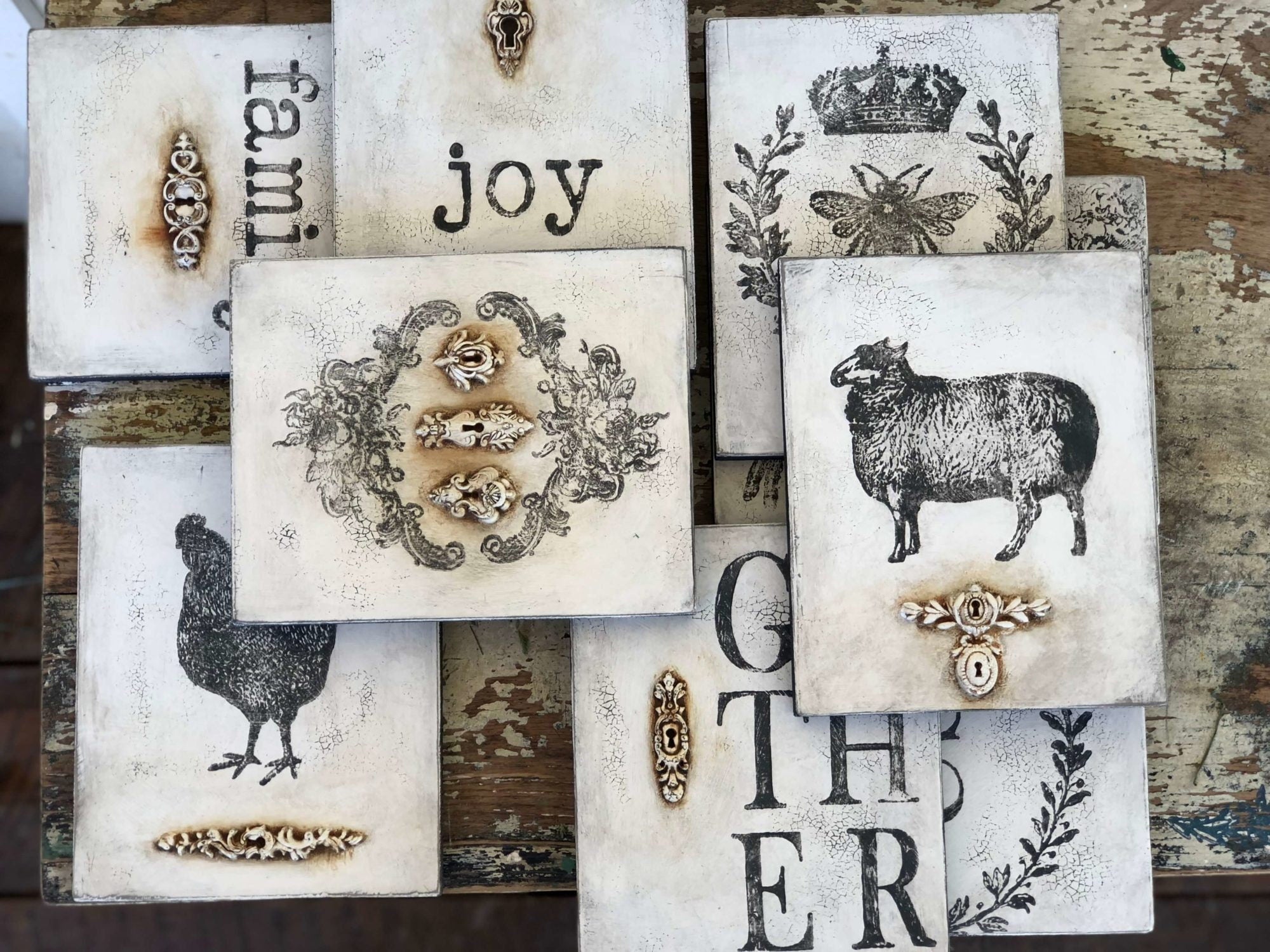 The 12x12 sheet has multiple stamp designs featuring bees, laurel swags, crowns, rose bouquets, trim moulding strips & royal crests. The collection of stamps are thoughtfully designed for ease of use and maximizing your decor uses to build your own scenes with individual stamps by grouping them together. Stamps aren’t just for ink projects! Use stamps with your choice of medium such as ink, paint or use to make an impression in plaster or clay. Perfect for adding little embellishments on cards or full scenes to furniture projects.