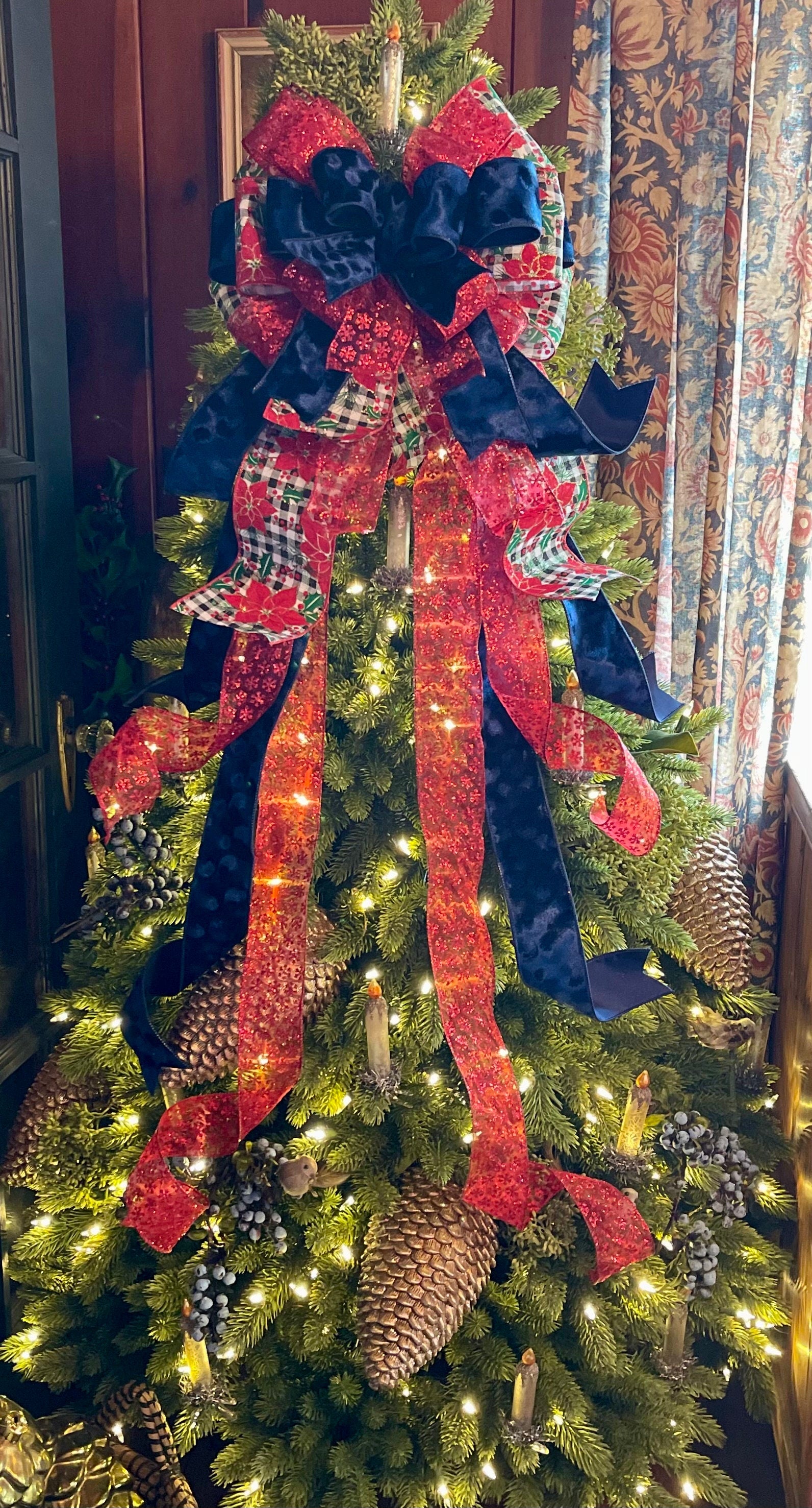 Bow displayed on a 6 1/2’ full tree - bow may appear differently depending on your size/shape tree.