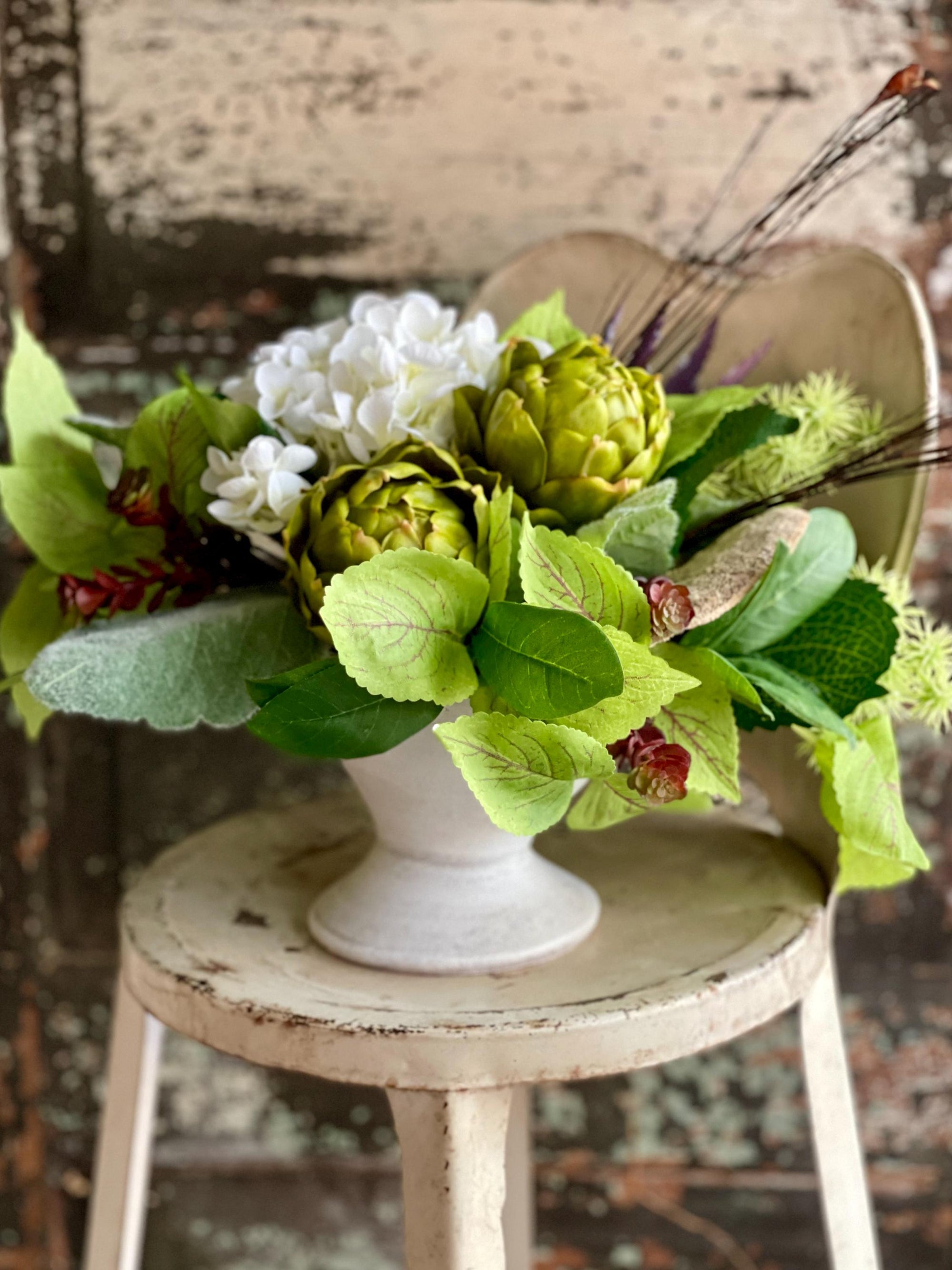 Our new favorite to work with! Add a little something special to your designs or use a few stems in a small planter to add a fresh touch to kitchens, bathrooms, windowsills or shelving. Each stem is 3” in diameter and has lovely detail that resembles the actual plant. This artichoke is made from foam with firm papery shell & not the shiny odd green plastic you see in big box stores! Each one has a high level of detail & color contrasts that look surprisingly real.