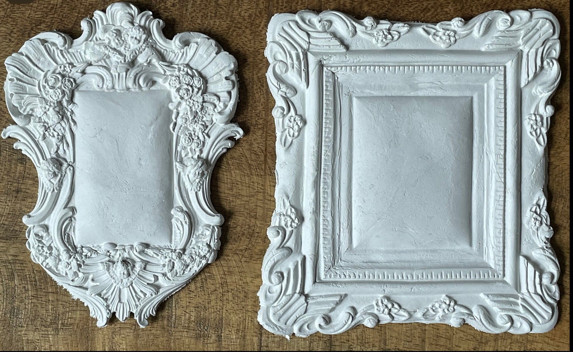 This 6x10 mould has 2 large art frame designs at varied size. The overall moulds are thoughtfully designed for ease of use and maximizing your decor applications and have been newly redesigned with measurements on each one to ensure the perfect pour for resin or other mediums. Casting moulds can bring a new dimension to your craft projects, use your choice of medium such as air dry clay, paper clay, hot glue, soap or use resin pours to make beautiful casts. Perfect for adding embellishments on furniture, signs, tiles, pots and so many other creative ways to use them! These moulds are also food safe and can be used for creating chocolate molds, pie embellishments & cake elements! If using for food, you must not use for clay or other medium - buy 1 for food use and 1 for crafting!