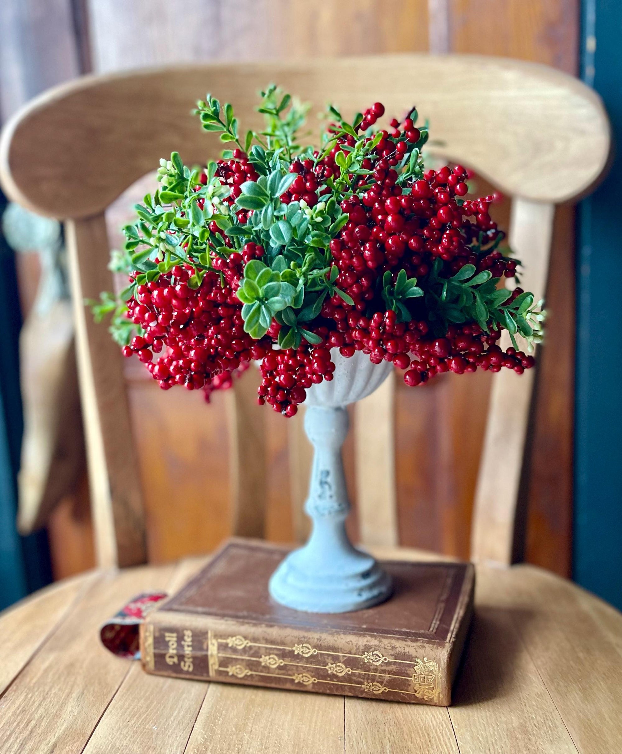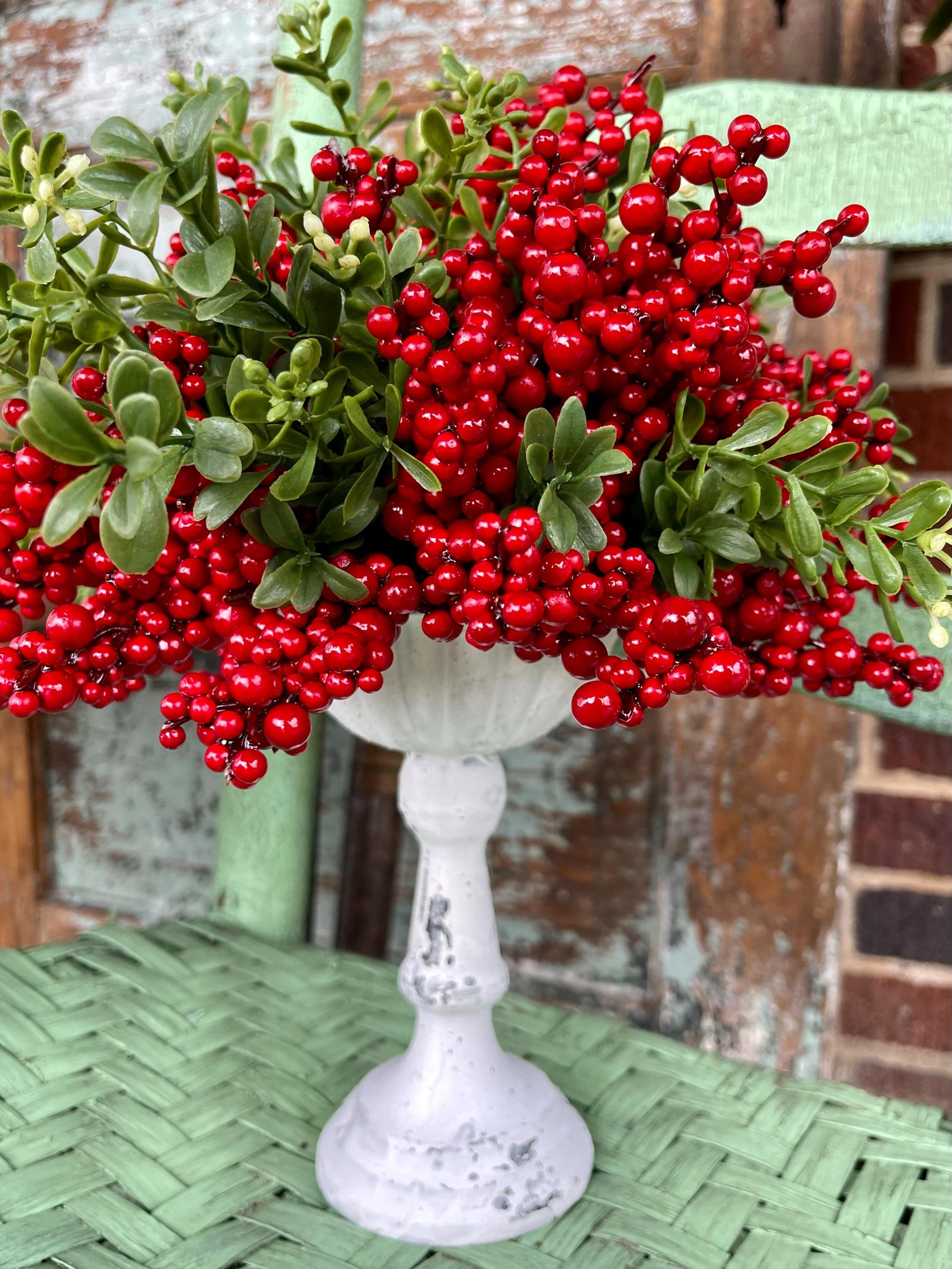 Want to make centerpieces like the pros? It really isn’t difficult - our half spheres make it easy for the home DIY’er to create a beautiful topiary in minutes! This gorgeous red berry half sphere has a flat bottom which is easily glued or tied into your arrangement. All you need is a small container or candlestick, fill with foam and glue the sphere down in the center. Easy peasy and instantly gratifying!